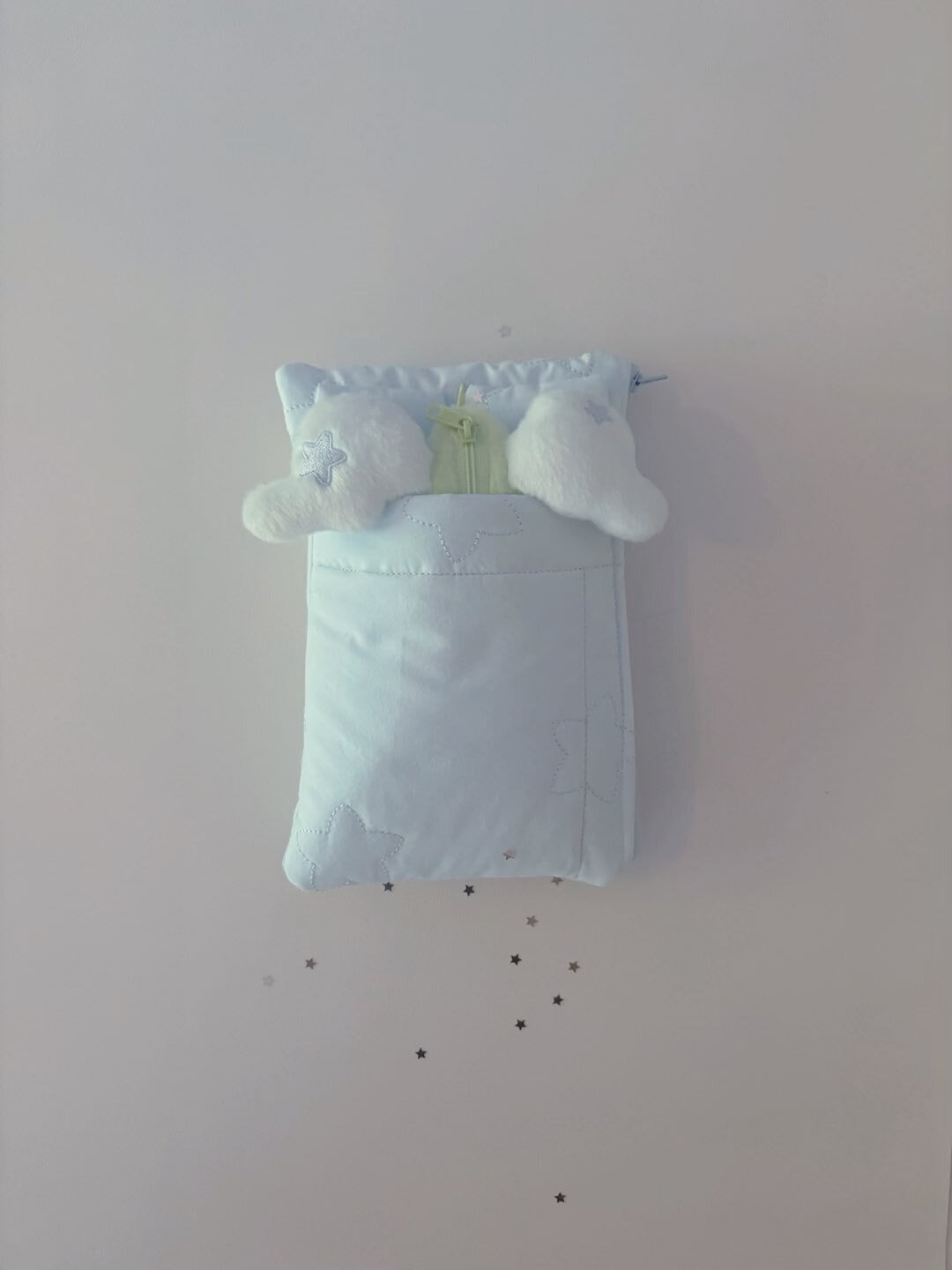 ”オーダーメイドの生地で制作したこちらのポーチ以外にも、今回はピローケースやコレクトブックを準備いたしました★”